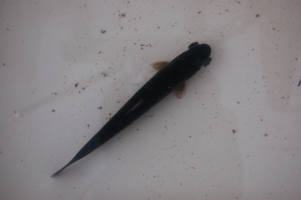 Abb. 4: VHS - Glotzaugen und Dunkelverfärbung bei einer Regenbogenforelle