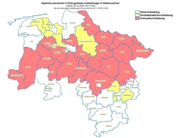 Einige Landkreise haben eine Aufstallung für in Freiland gehaltenes Geflügel erlassen. Eine Übersicht entnehmen Sie bitte der Karte (Link). In der Karte sind auch geplante Aufstallungen enthalten, die erst ab nächster Woche gelten!